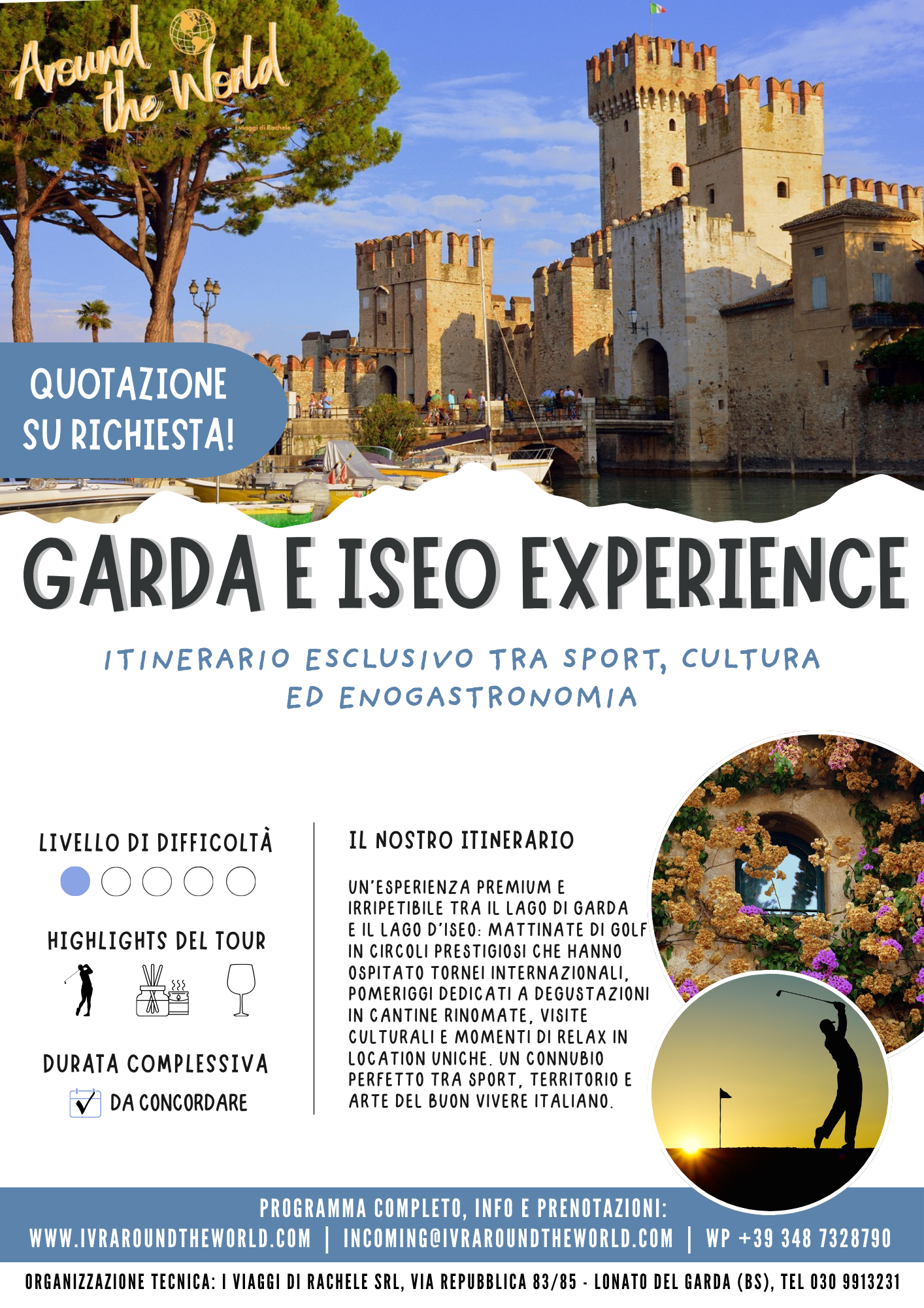 Un’esperienza premium e irripetibile tra il Lago di Garda e il Lago d’Iseo: mattinata di golf in circoli prestigiosi che hanno ospitato tornei internazionali, pomeriggi dedicati a degustazioni in cantine rinomate, visite culturali e momenti di relax in location uniche.
